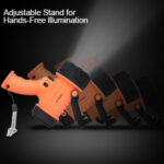 Includes a sturdy stand on top for hands-free lighting.You can adjust the stand from 0-125° to meet your versatile needs, thus making your hands free.